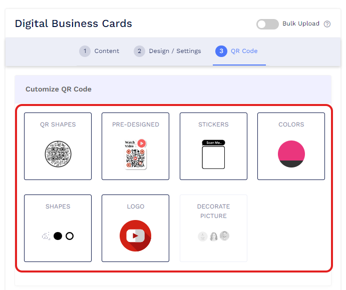An der QR Code Sektioun, personaliséiert Äre QR Code mat de gegebene Designoptiounen.